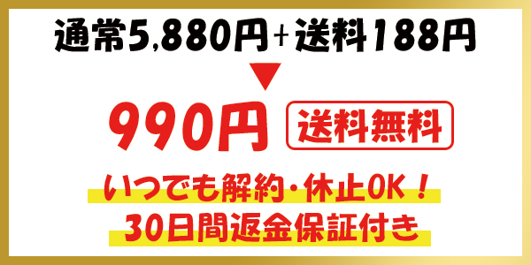 初回購入の人に限り、通常価格5,880円のところ、クーポン適用で990円で購入が可能です。